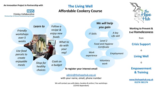 - Be available to anyone in the local community (Surrey Heath and surrounding areas) who will benefit from learning how to cook on a budget