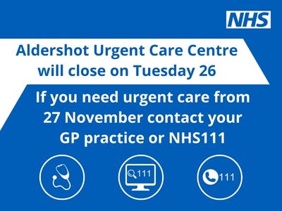 On Tuesday, 26 November, the pilot Aldershot Urgent Care Centre service will be coming to an end after nearly a year. NHS Frimley, North Hampshire Urgent Care and Frimley Health NHS Foundation Trust are working together to continue to provide urgent care service for the people of North East Hampshire, Surrey Heath and Farnham. From Wednesday, 27 November, if you have a health ...