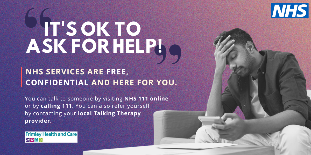 This year the NHS is encouraging you to take the time to tell yourself and one another that ‘it’s ok to ask for help’. No one needs to struggle alone - the NHS is here for you. If you think you might need support, do not delay. Ask for help.