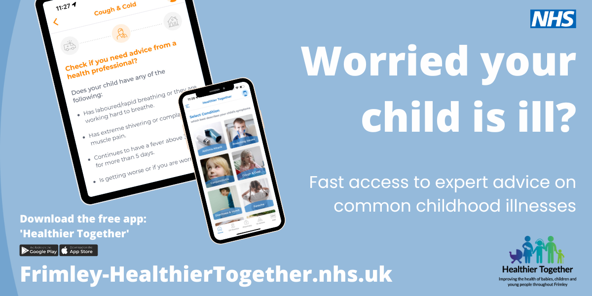 The Frimley Healthier Together App provides clear, reliable advice from the NHS and is designed to be a handy guide, accessible at home or on the go.