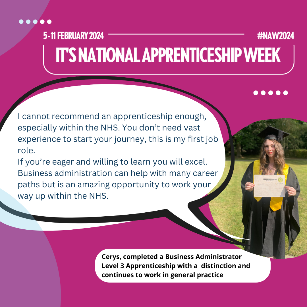 Sarah Page, Assistant Practice Manager, said: “There are over 350 careers in the NHS. Starting off within primary care can open doors to a variety of careers - both clinical and corporate - in health and social care.