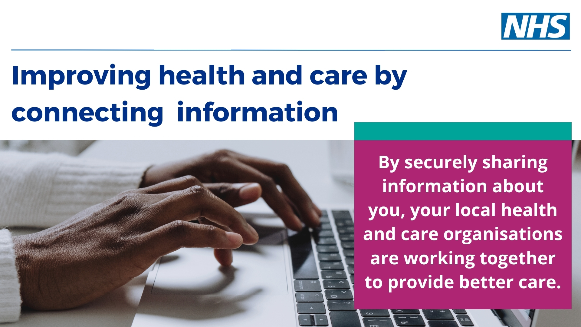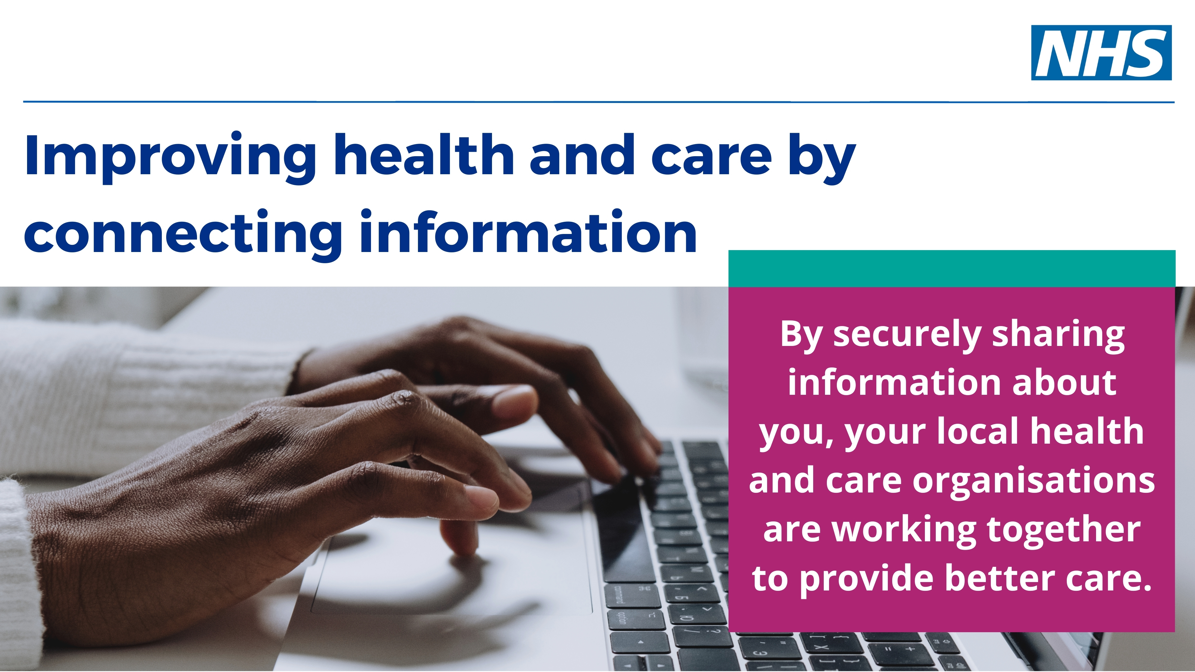 Below you will find a variety of resources that support our 'Data Sharing' campaign. You can add your logo to the top left of the resources where needed (but you must keep the NHS lozenge top right) and share as widely as possible.