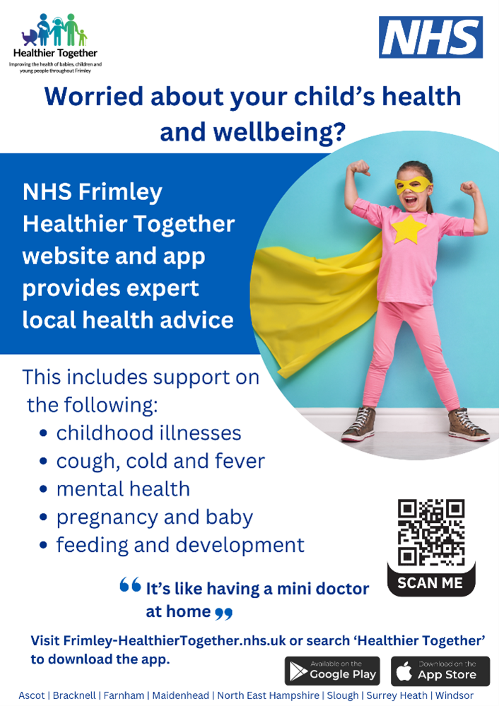 Parents and carers of children and young people can now help themselves deal with common childhood conditions by downloading the Frimley Healthier Together app.