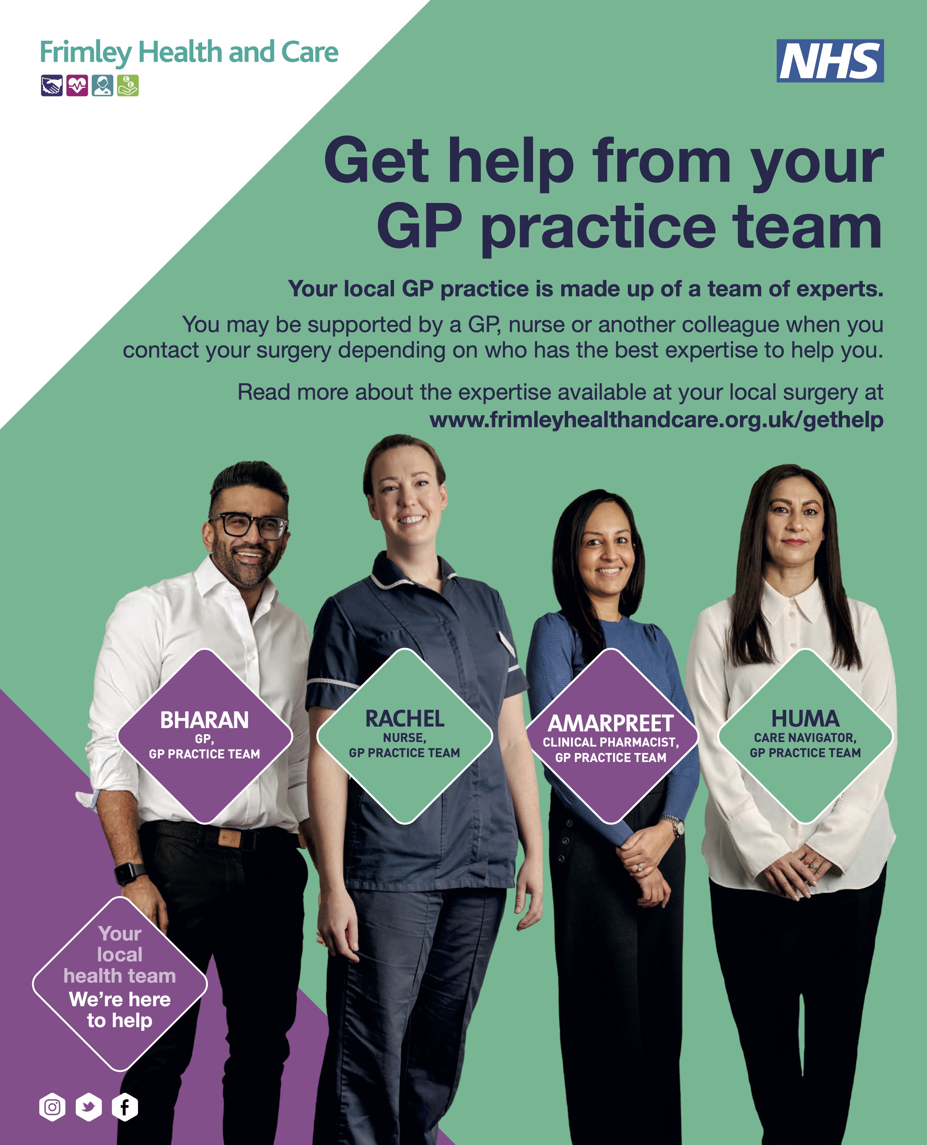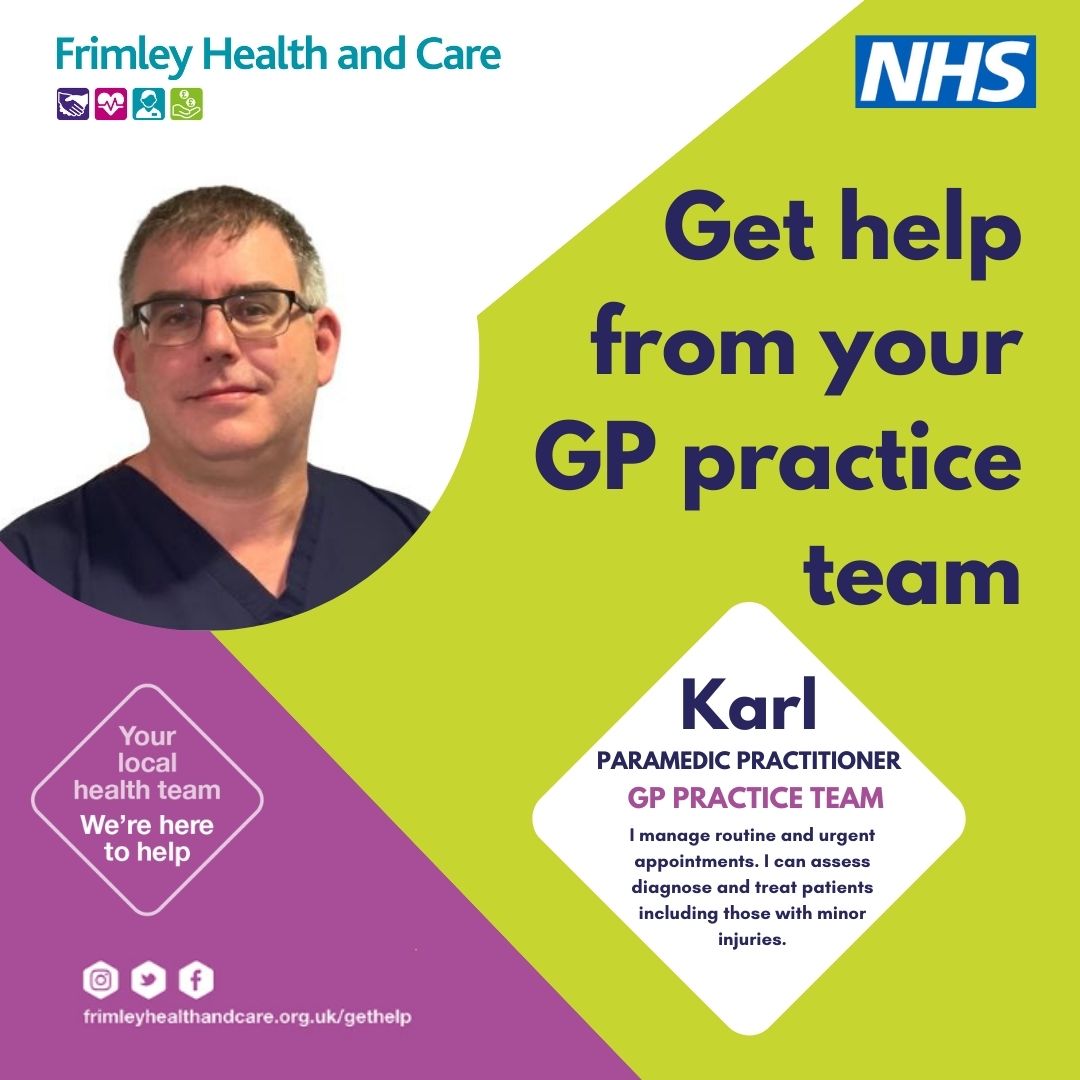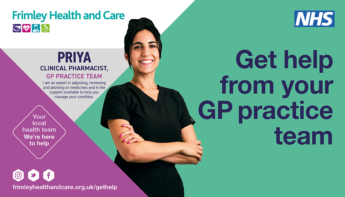 Helping local people to understand the different ways that they can access support from their GP practice team and who they might see for their need is a key priority for Frimley Health and Care and for NHS England.
