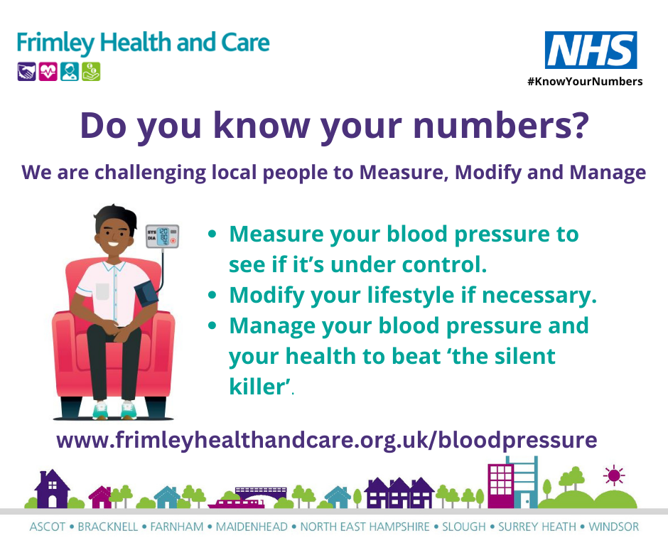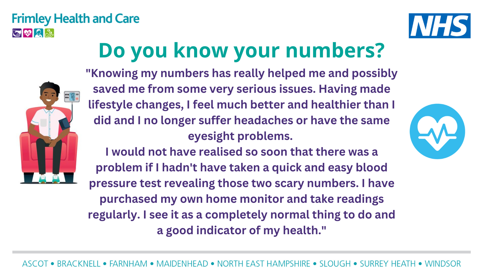 The importance of knowing your numbers is an ongoing priority for the Frimley Health and Care Integrated Care System and we encourage partners to build this message into their business as usual self care messaging. Below you will find public resources to use and share with local people.