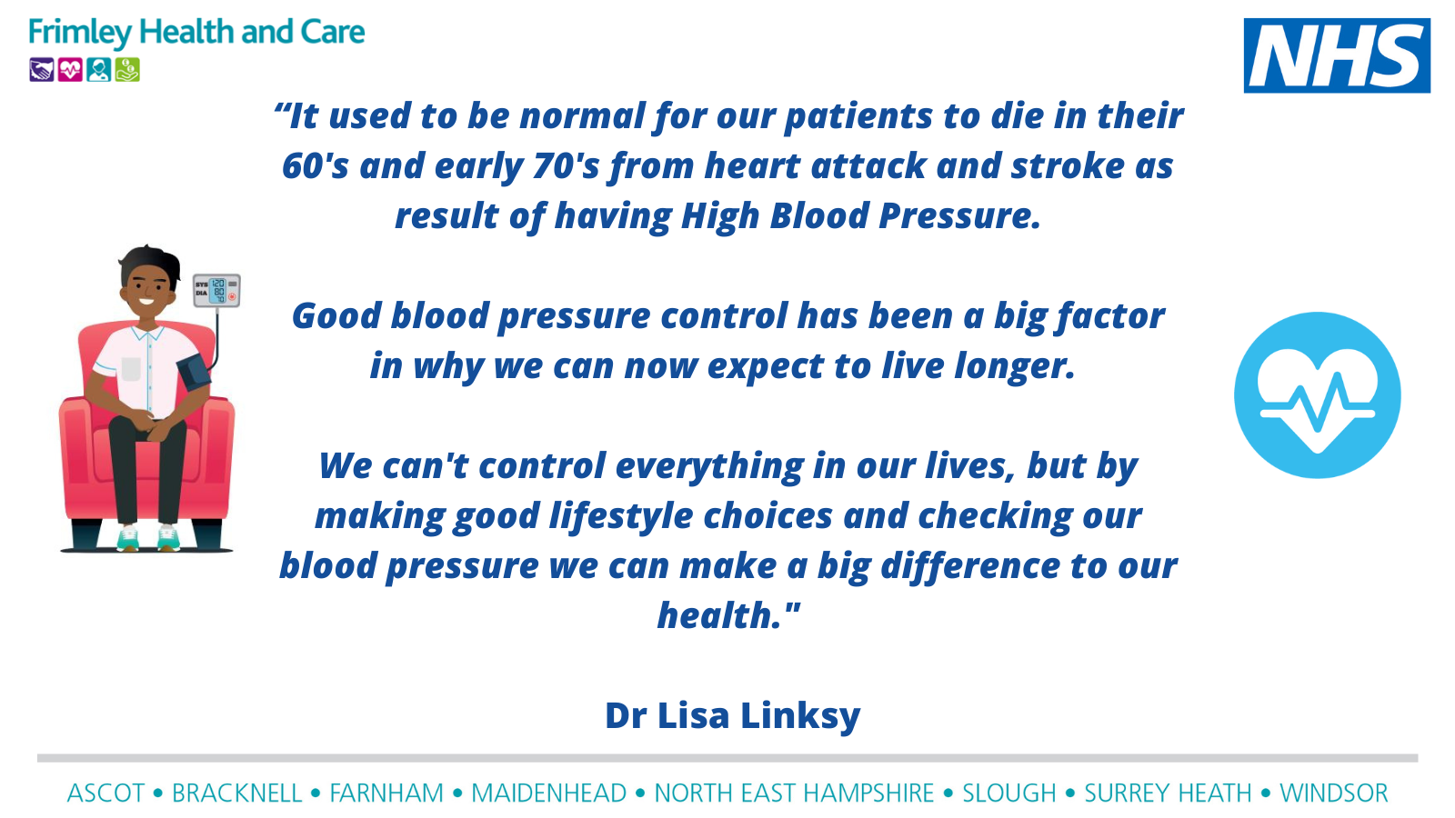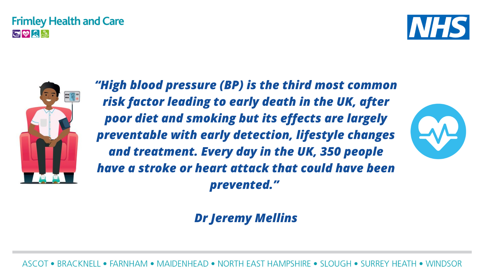 Raising awareness of the risks of high blood pressure (Hypertension), the importance of taking regular blood pressure readings and the small lifestyle changes that can have a big impact on this treatable condition is a priority for the Frimley Health and Care Living Well ambition.