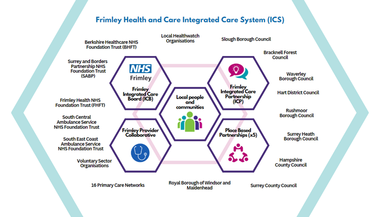 Frimley Health and Care Integrated Care System (ICS) is a partnership of NHS and local government organisations working together to join up health and care services to improve the health and wellbeing of people in the communities we serve.