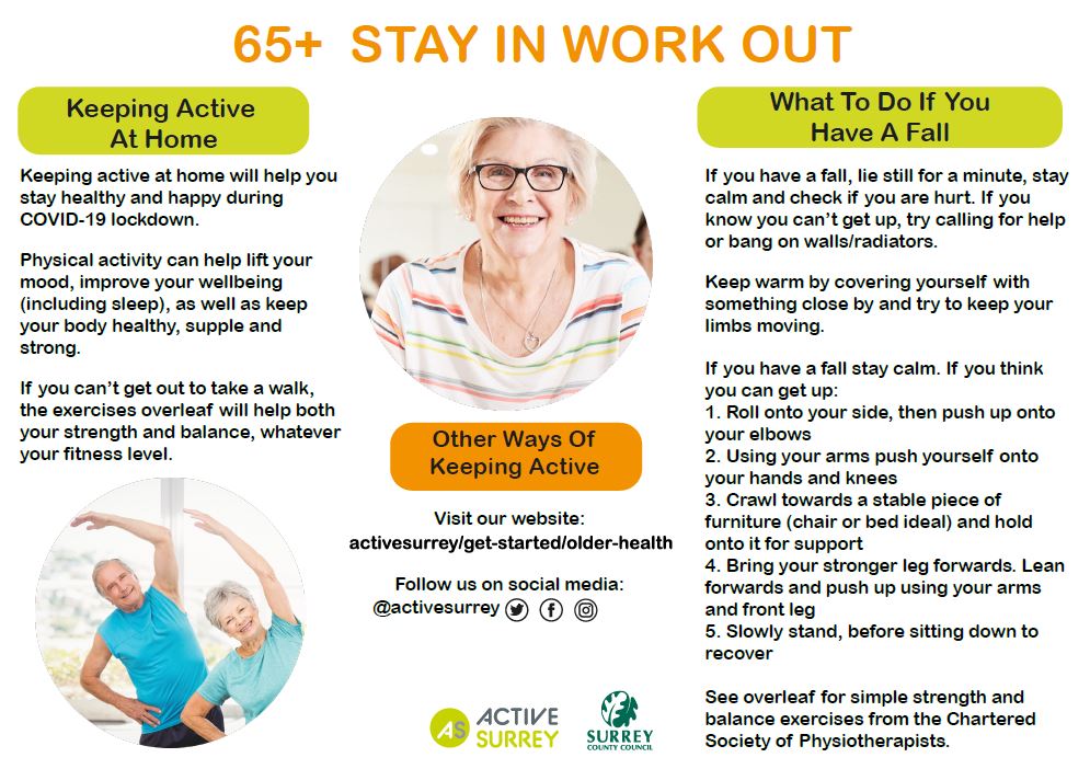 Six simple exercises used by physiotherapists to keep muscles strong and to help people stay mobile and independent in older age.
